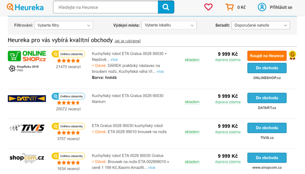 Co však veřejně není nic tajného, je že kromě výše již zmíněných 4 faktorů, je třeba brát v potaz i konkurenci, která do aukce vstupuje spolu s vámi. Hraje velmi podstatnou roli v tom, kolik vás proklik bude v konečném důsledku stát. Nezáleží totiž jakou částku máte nastavenou ve feedu, ale to, kolik je v tu danou chvíli na první pozici potřeba. Takže pokud máte nastaveno například 30 Kč a na první pozici stačí 12 Kč, tak zaplatíte jen 12 Kč. Nicméně v případě, že nastavíte cenu moc nízko a na první pozici nedosáhnete a někdo získá v součtu vyšší skóre než vy, zařadí se váš e-shop na pozici za něj, případně za více takových e-shopů. V praxi to znamená, že pokud budete nabízet vyšší cenu za proklik, budete tak mít větší šanci, že svými produkty obsadíte první příčky vyhledavače a tím výrazně zvýšíte šanci, že oslovíte i daleko více potenciálních zákazníku, než kdybyste byli někde pod čarou.